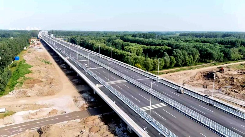 市建科院代建路段全長5.3公里,始于河北省廊坊市香河縣鉗屯鎮雙安新城西側的國道G230鉗屯彎道,止于國道G230與鄉道老夏安線的交匯處。項目的核心為全長2909.5米的北運河特大橋及引橋工程,包含一座長度280米跨越北運河的主橋。全路段按照一級公路標準進行修建,路基寬度為45米,配備機動車雙向六車道,并前瞻性地設置了獨立的非機動車道及人行道,設計時速為80公里。